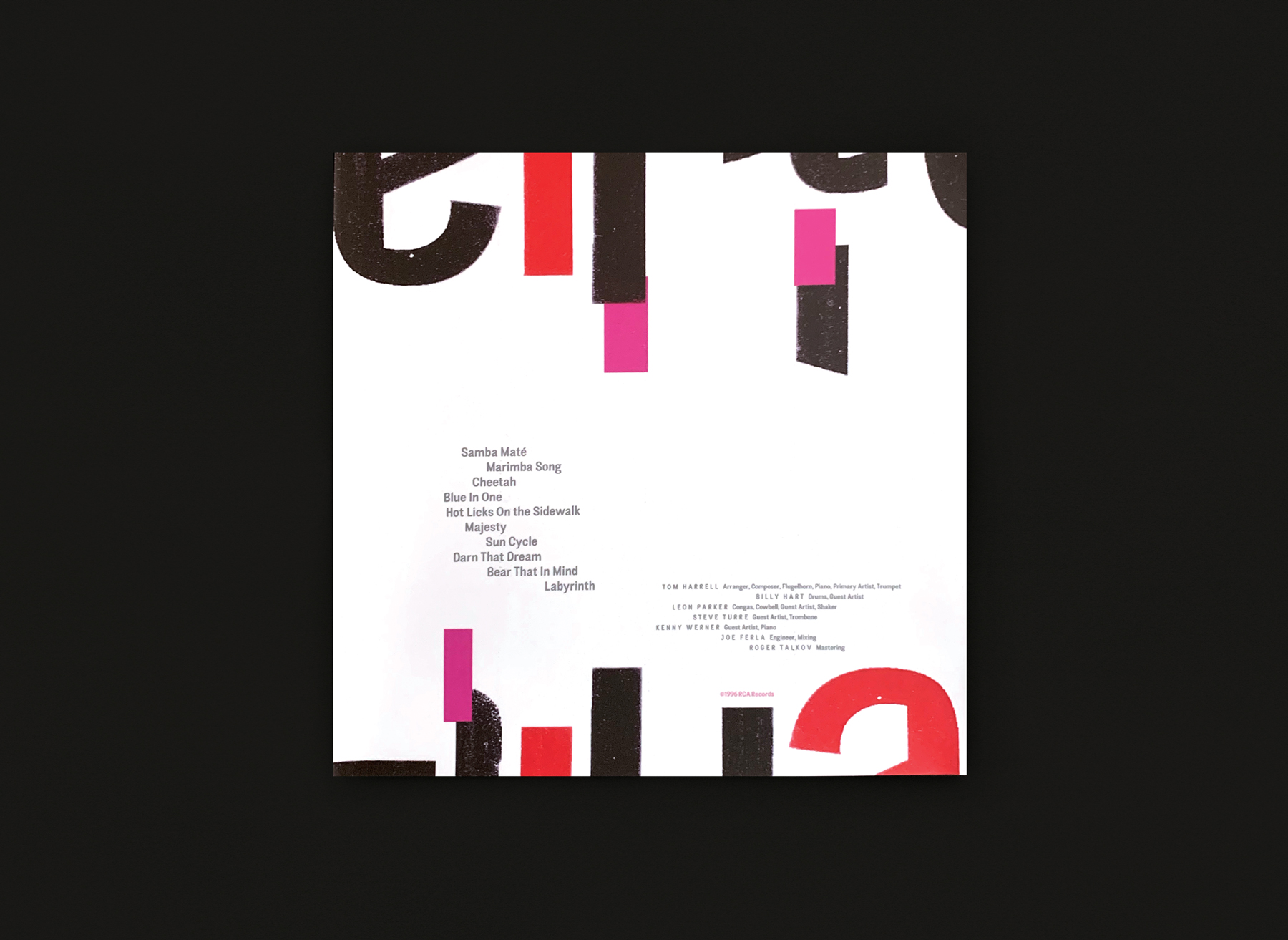 Conceptual album cover for jazz trumpeter and composer Tom Harrell, using custom-designed typeface, Mamba Sans.
